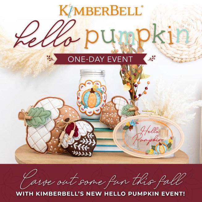 At Kimberbell’s one-day Hello Pumpkin machine embroidery event you’ll make four darling autumn projects! Stitch two Acorn Plushies, then make a Pumpkin Jar Wrap with quilting on the ribbon ties. The Hello Pumpkin Screen is stitched on mesh screen and comes with five extra sentiments for later. With a variety of new techniques, Hello Pumpkin is where machine embroiderers gather for friendship and fun!